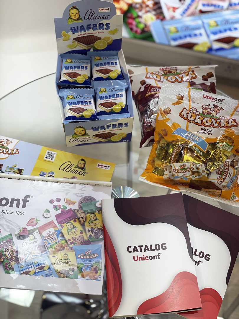 На стенде компании представлены знаменитый в России и за рубежом шоколад «Alionka», популярные на Ближнем Востоке вафли «Korovka», а также выпускаемая под брендом «Artpassion» премиальная продукция – шоколад и конфеты.