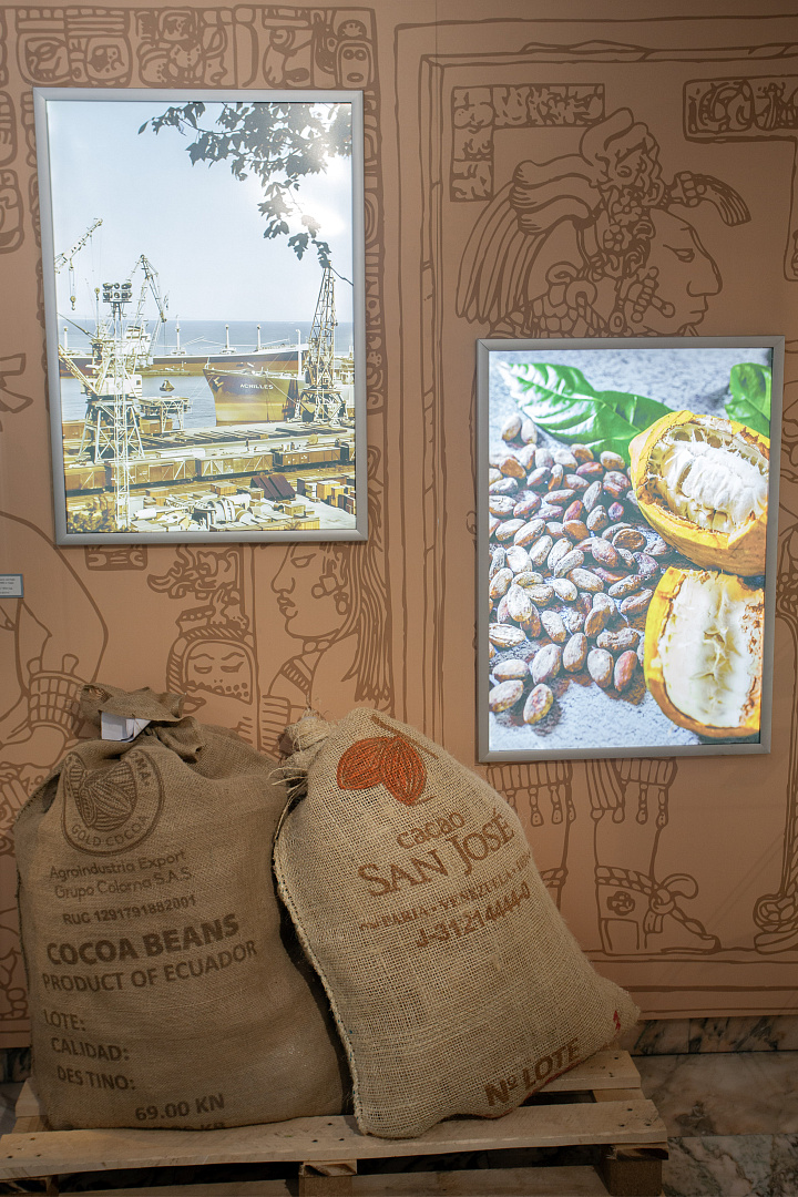 Экспозиция рассказывает о том, как какао-бобы, из которых впоследствии создают шоколад, преодолевают тысячи километров по морю.
