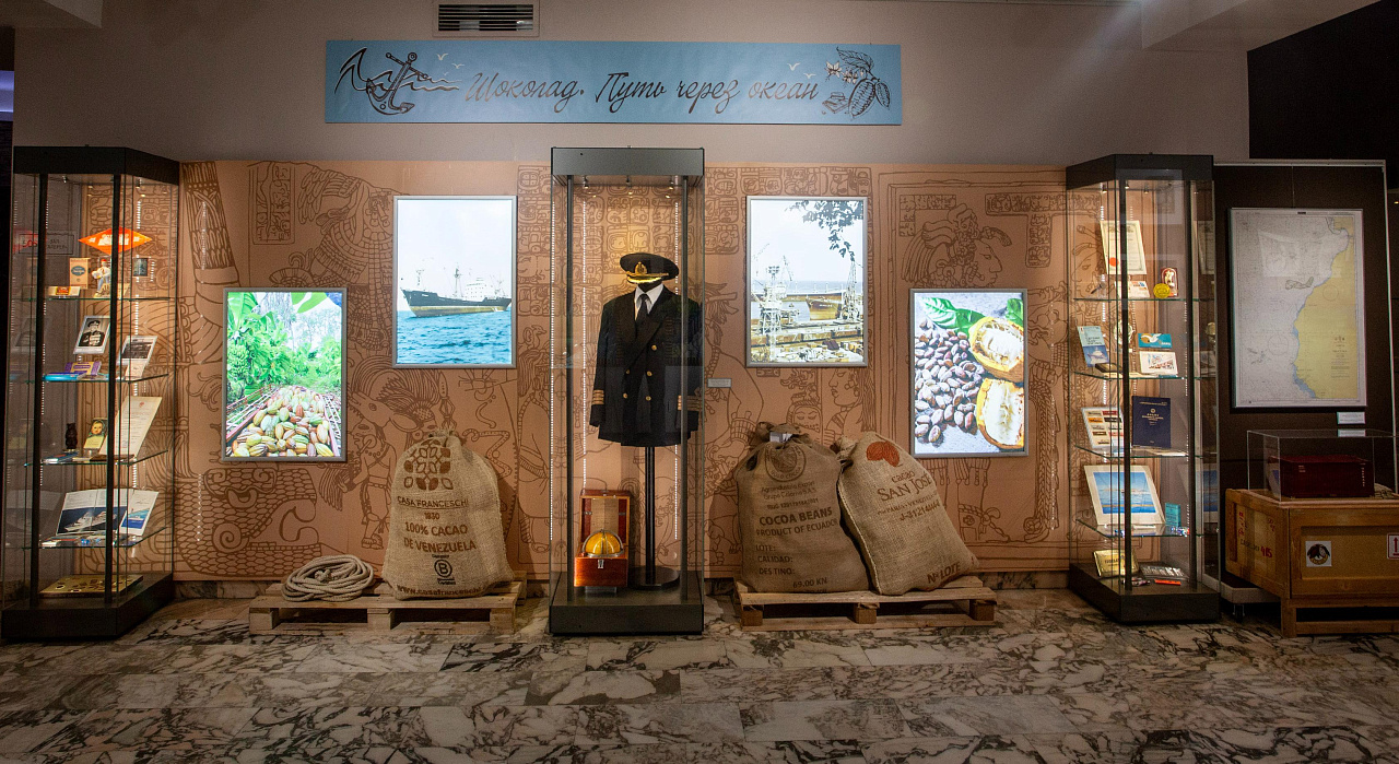 Если раньше какао-бобы перевозили на парусных каравеллах, то сегодня для этого используют крупные грузовые суда, способные доставлять тысячи тонн груза. Выставка подготовлена совместно с "Музеем морского и речного флота", поэтому в экспозиции можно рассмотреть много уникальных диковинок.