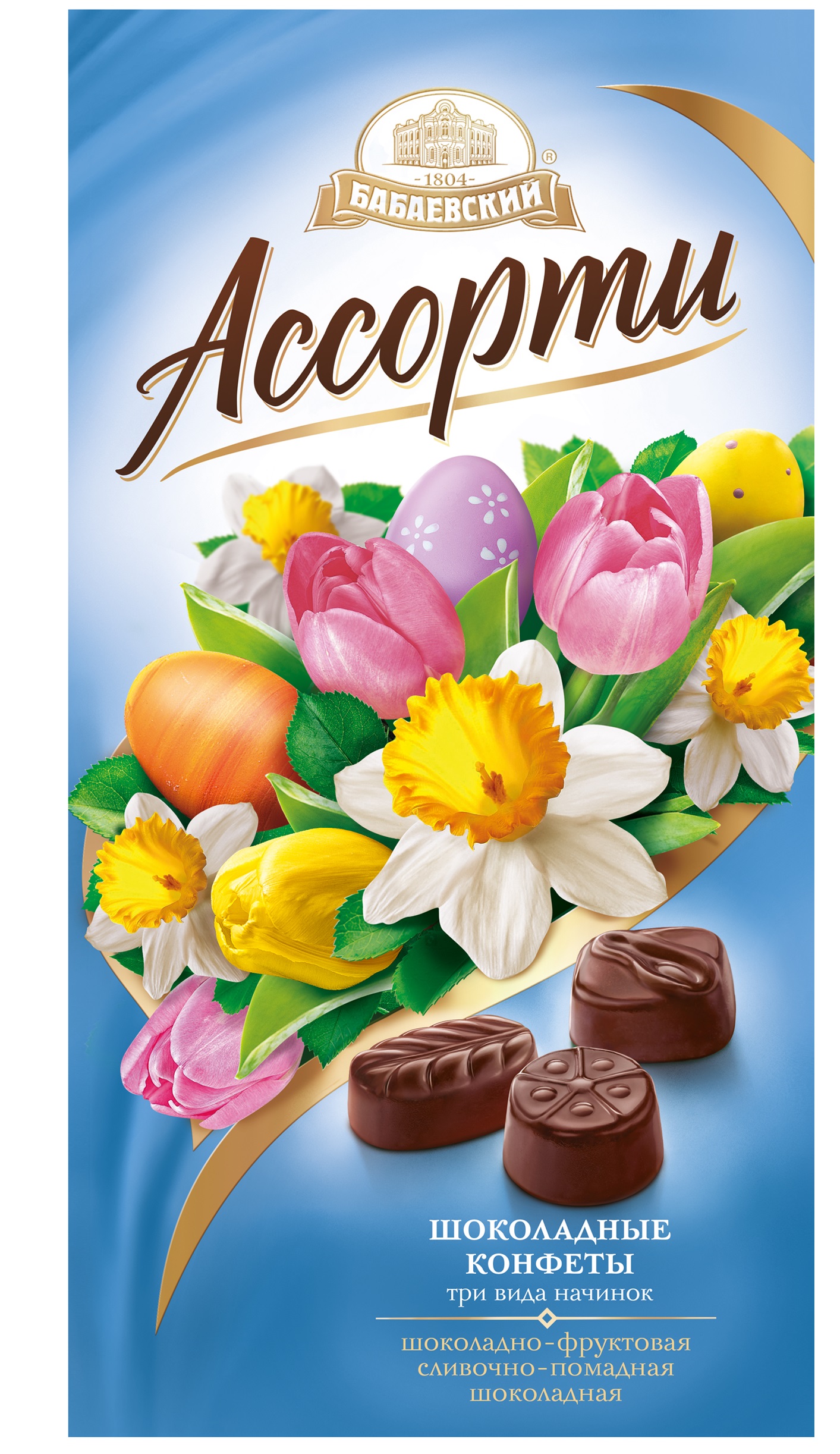 Набор из трех видов конфет с оригинальными начинками: помадно-сливочной, шоколадной и шоколадно-фруктовой. Конфеты глазированы настоящим шоколадом.