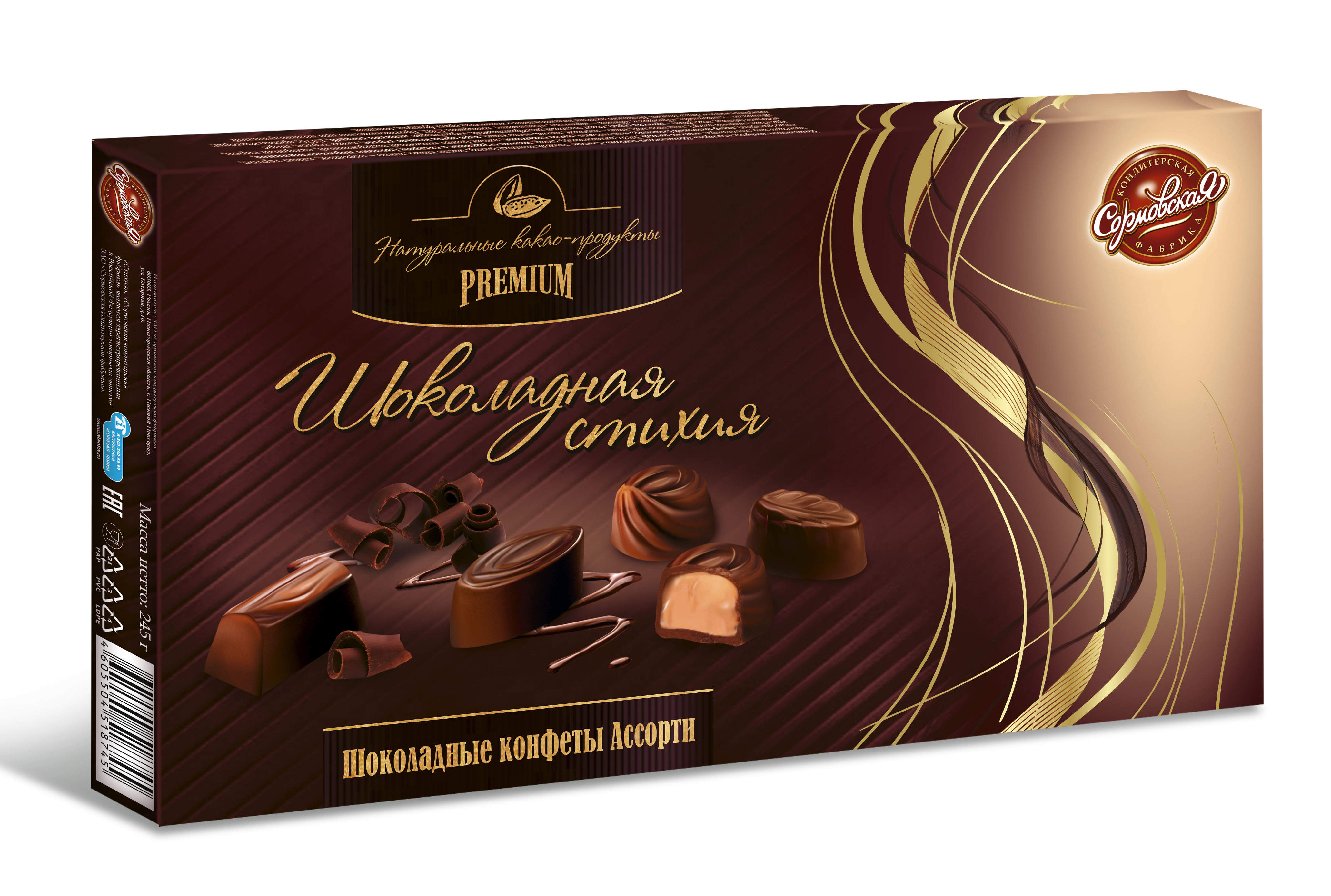 Набор шоколадных конфет с начинками: помадно-сливочной, трюфельной и шоколадной оригинальных форм. Коробка в современном дизайне