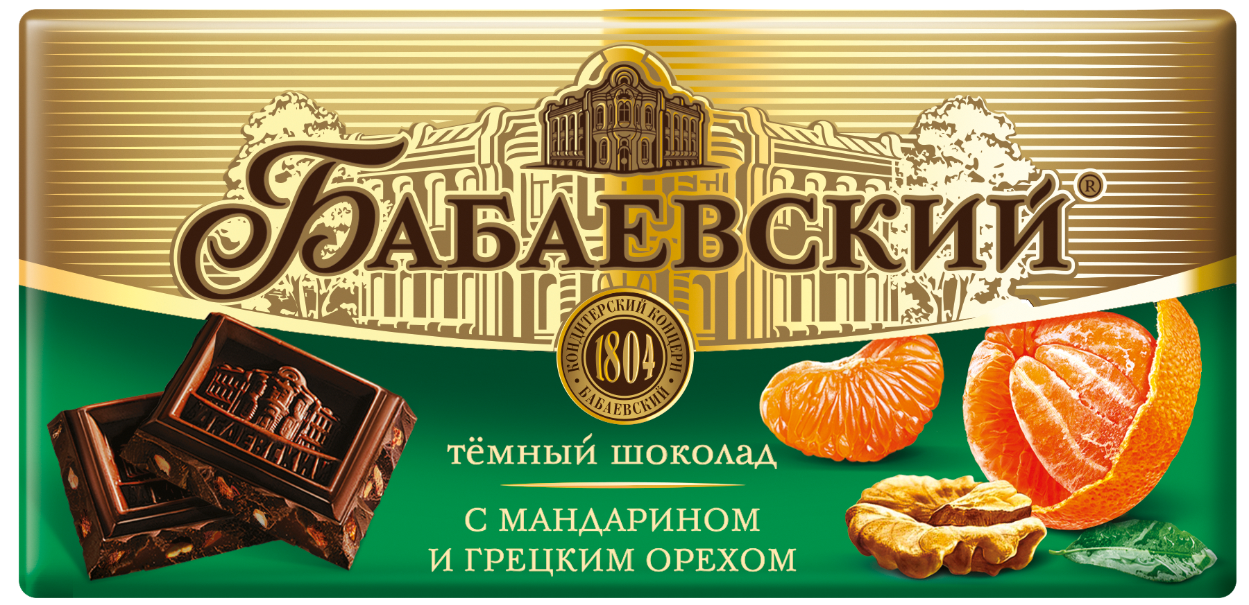 Темный шоколад с цукатами мандарина и дробленым грецким орехом
