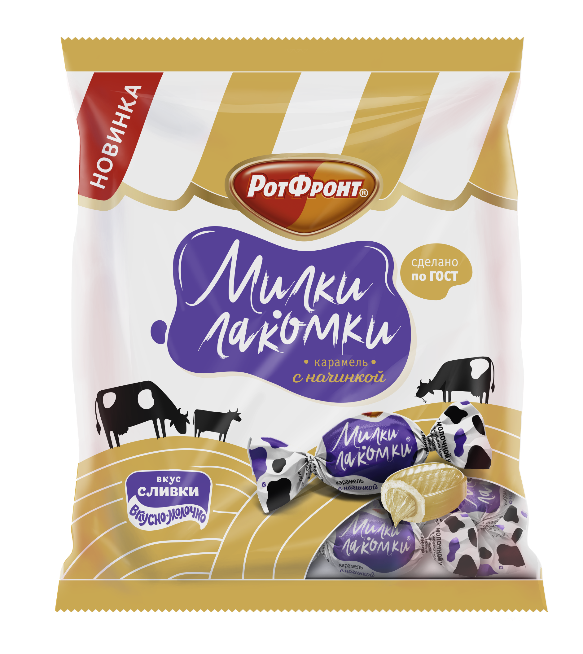 Карамель с популярной молочной начинкой, вкус нежных сливок, сделана по ГОСТ.