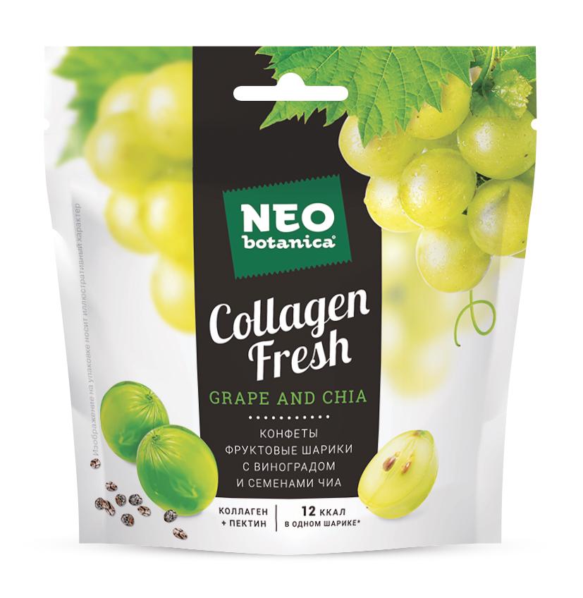 Конфеты неглазированные с желейным корпусом «Фруктовые шарики» Neo-botanica Collagen Fresh с виноградом и семенами чиа