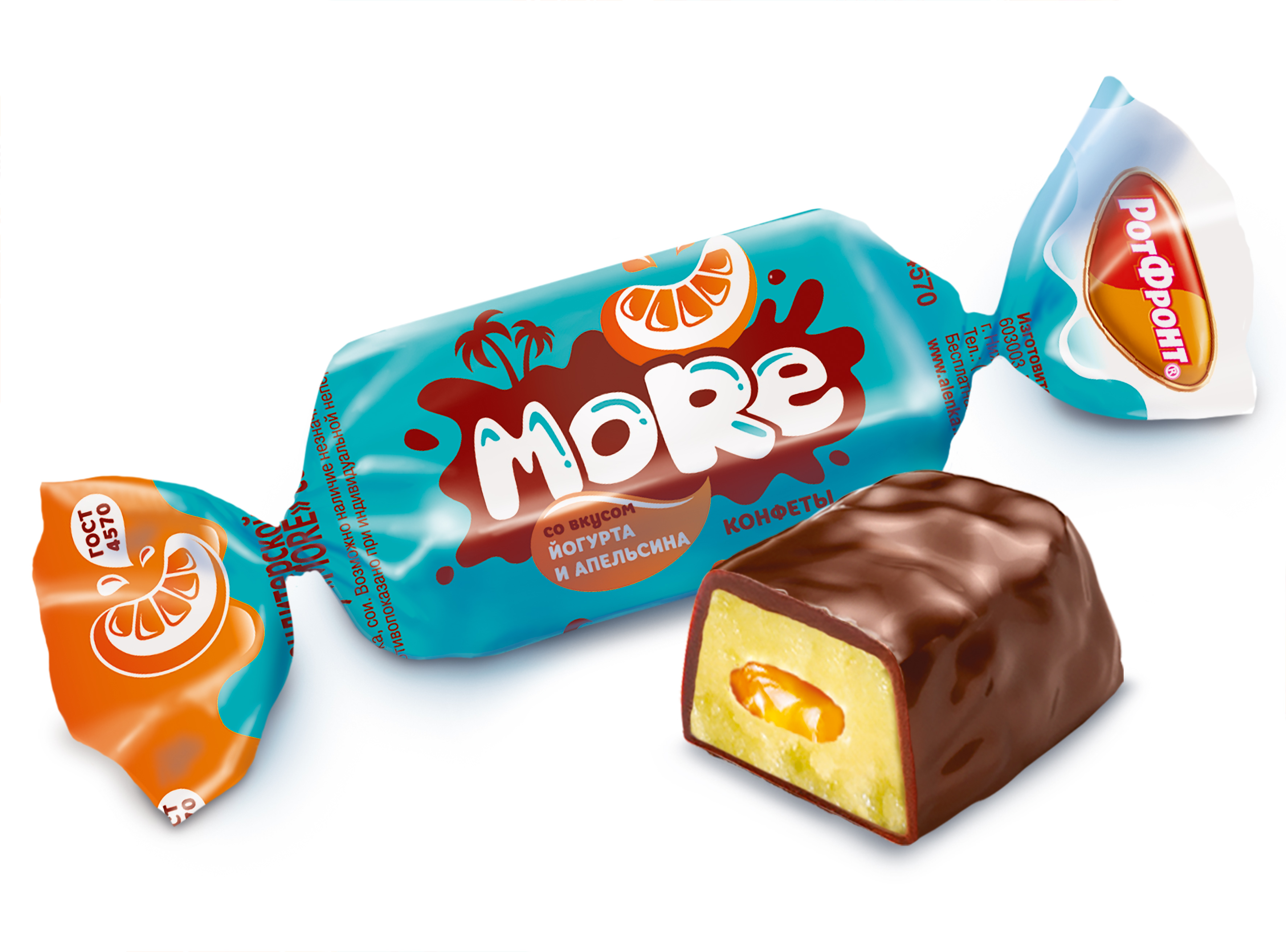 Глазированные помадные конфеты с желейной начинкой со вкусом йогурта и апельсина.