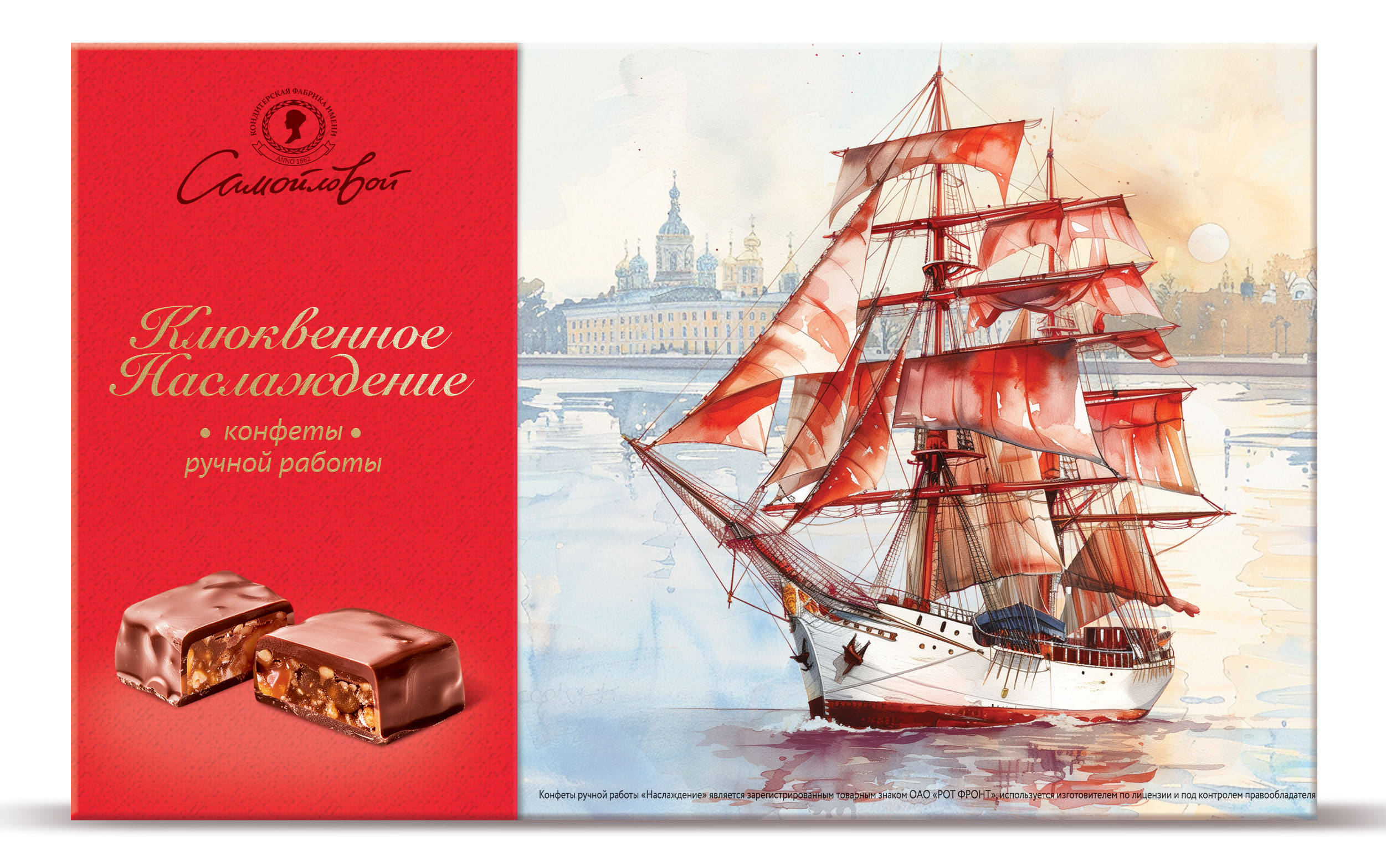 Конфеты глазированные шоколадной глазурью на основе мягкой карамельной массы с добавлением арахиса, воздушного риса и кусочков клюквы.