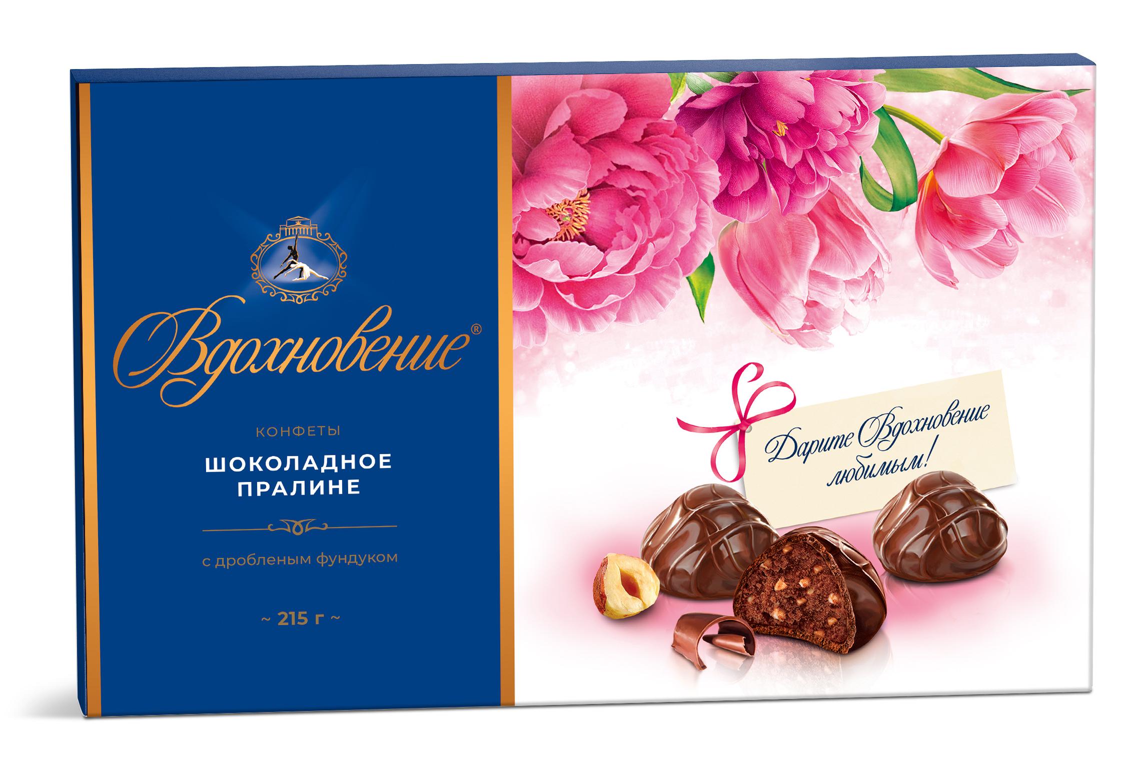 Набор куполообразных конфет в шоколадной глазури. Корпус — шоколадно-ореховое пралине с дробленым фундуком.