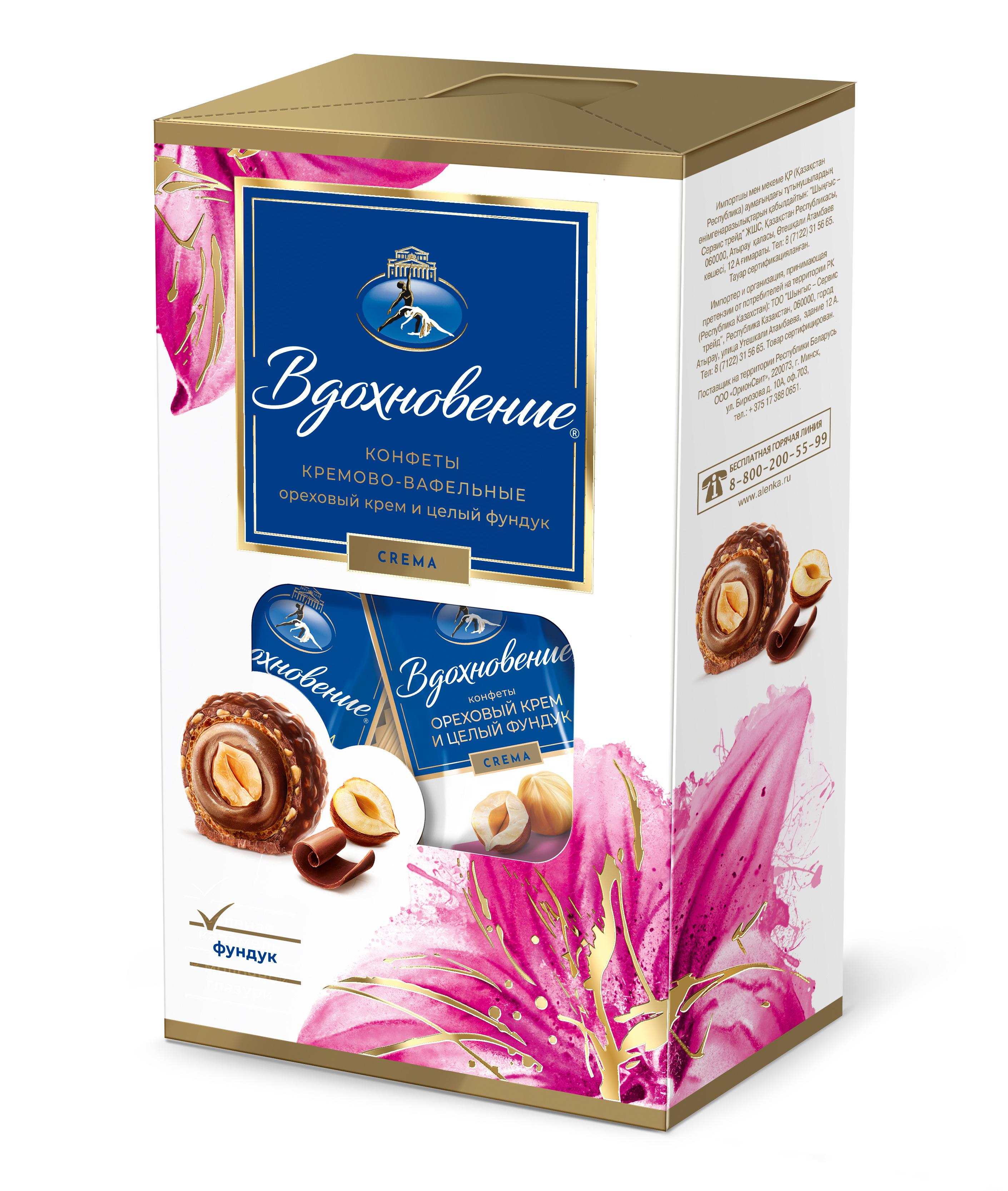 Нежный шоколадно-ореховый крем и целое ядрышко фундука, покрытые тонкой хрустящей вафлей в шоколадной глазури с измельчёнными орешками.