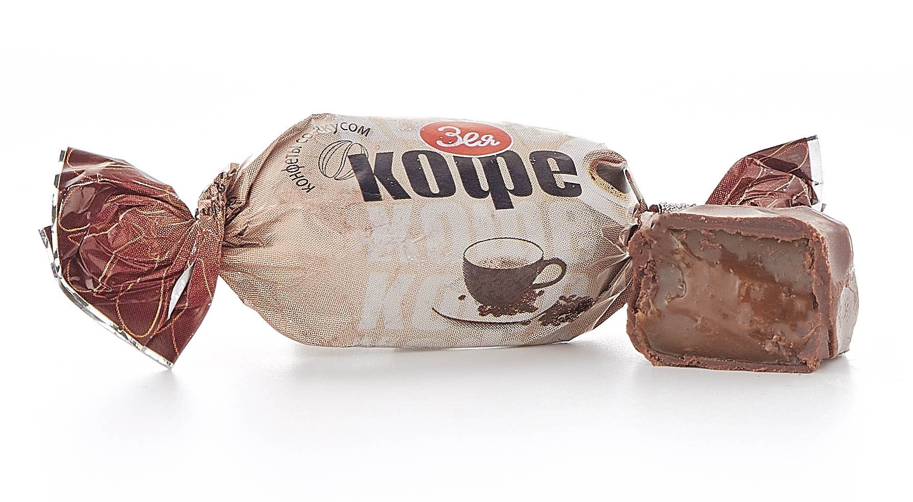 Глазированные шоколадной глазурью конфеты на молочных продуктах со вкусом кофе
