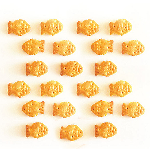 Классический крекер в форме рыбок с солью.