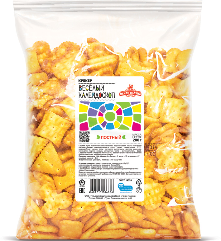 Хрустящий крекер по новому рецепту, прекрасно подходящий для чаепития. Выпускается в двух удобных вариантах фасовки на все случаи жизни. Без красителей и консервантов. Выпускается по ГОСТ.
