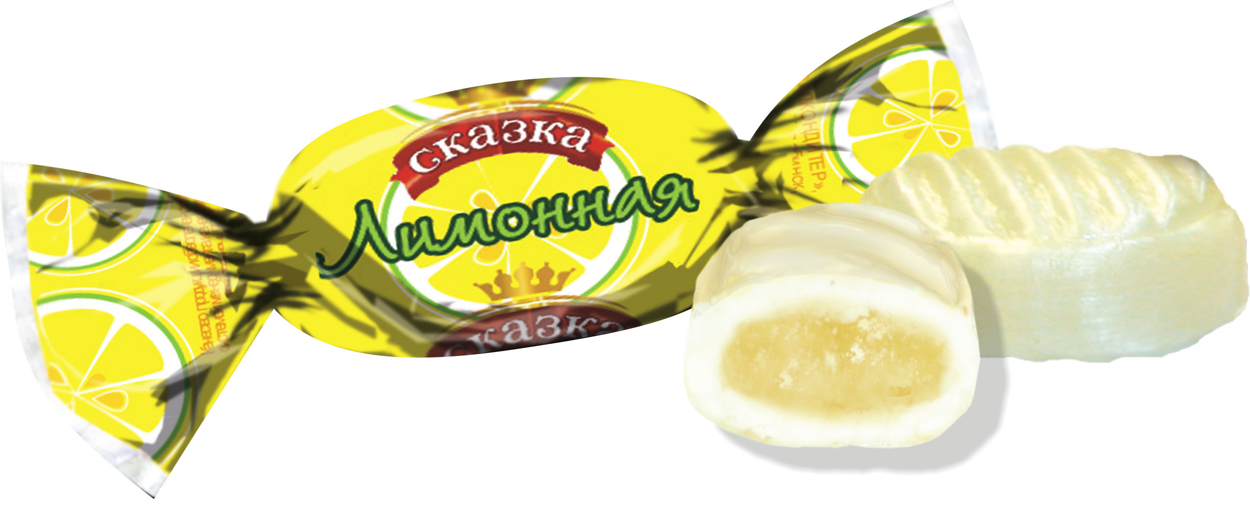 Карамель с помадной начинкой со вкусом лимона.