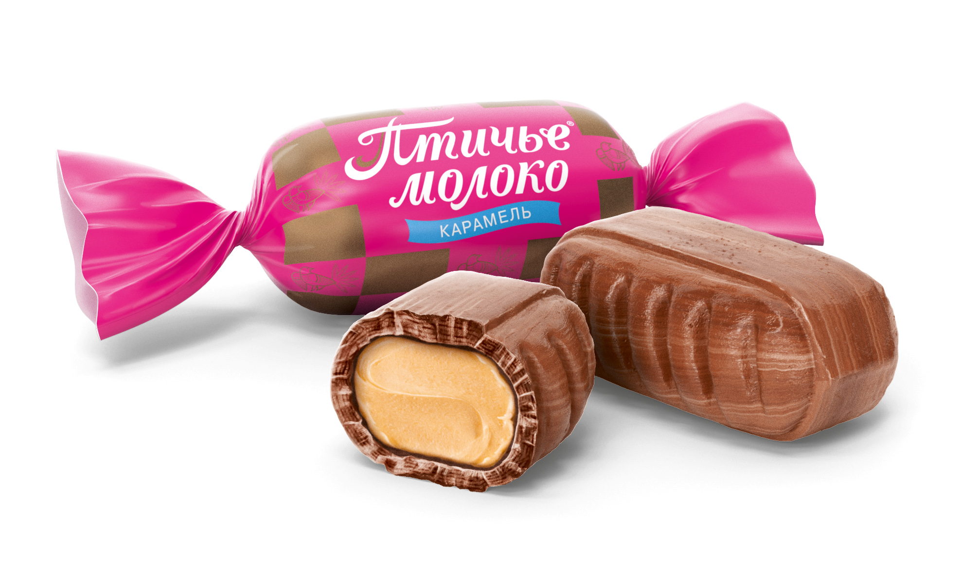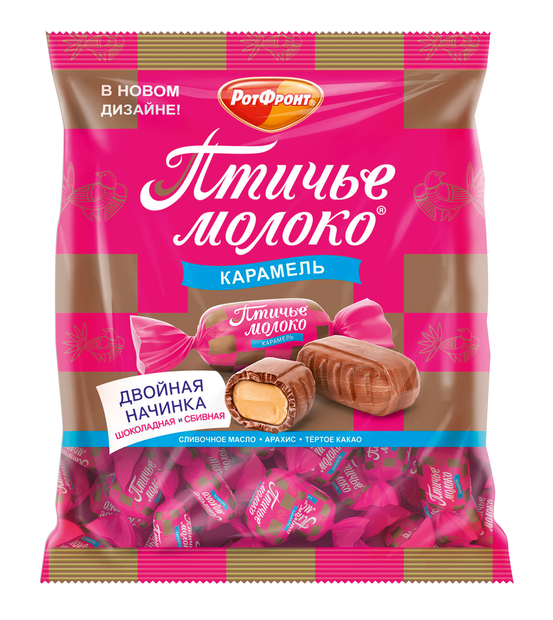 Карамель с двойной начинкой: сбивной и шоколадно-ореховой переслоенной карамельной массой.