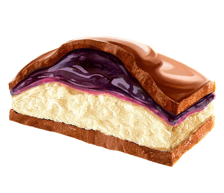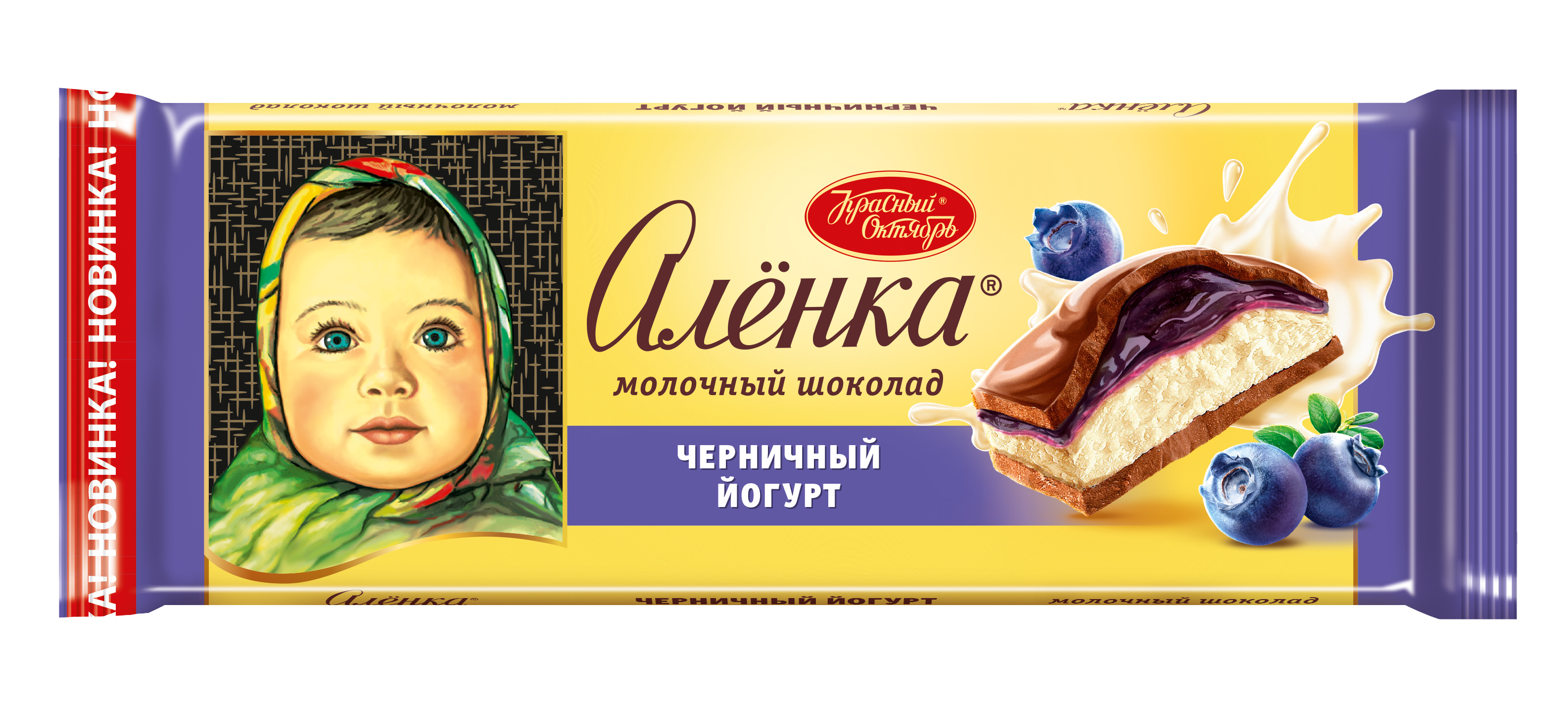 Молочный шоколад Аленка с двуслойной начинкой : слой ароматной молочной начинки и черничного джема, подарит наслаждение маленьким и взрослым сладкоежкам.