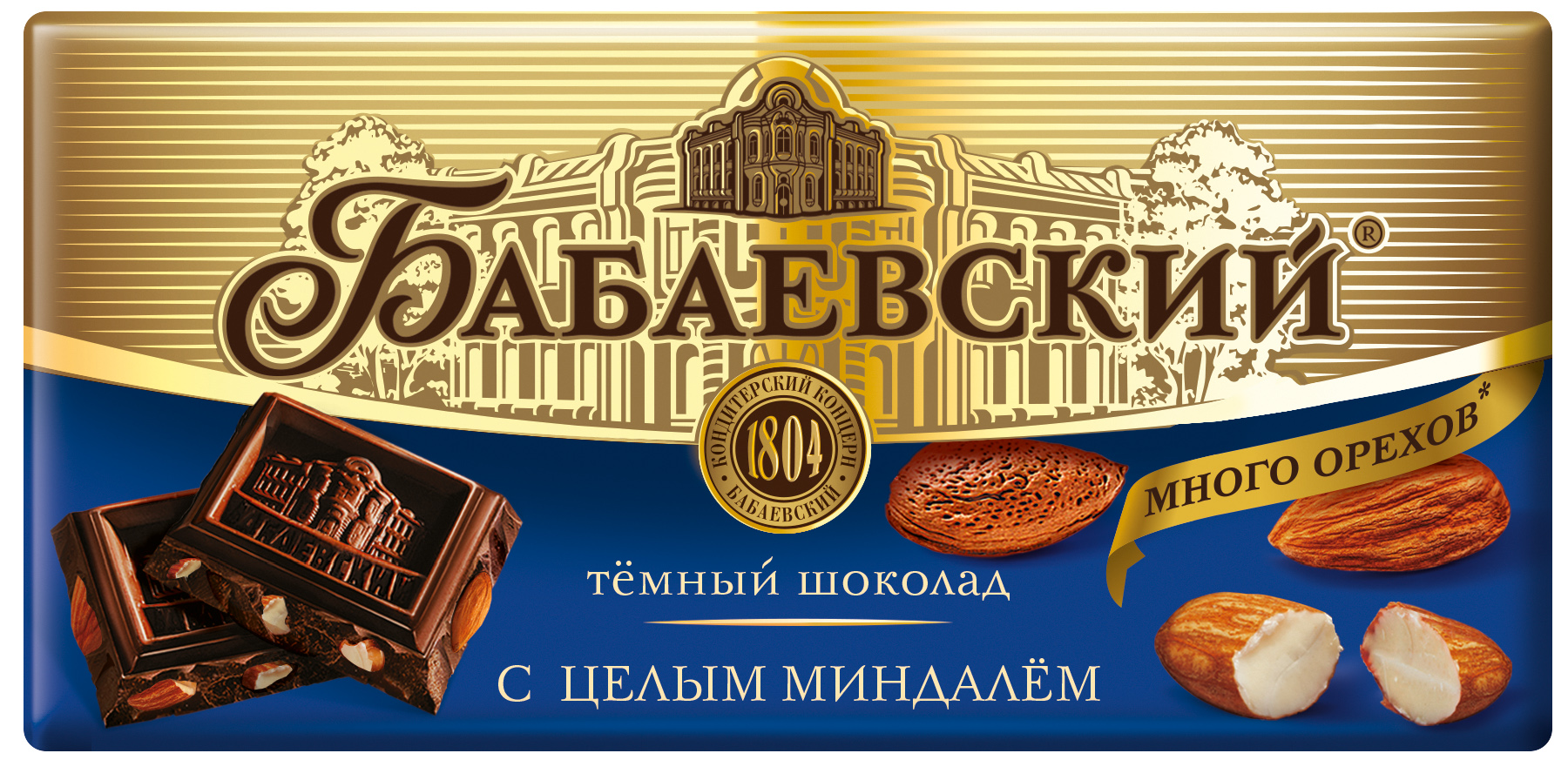 Тёмный шоколад с целым миндалём – это популярная классика линейки шоколада с добавками.