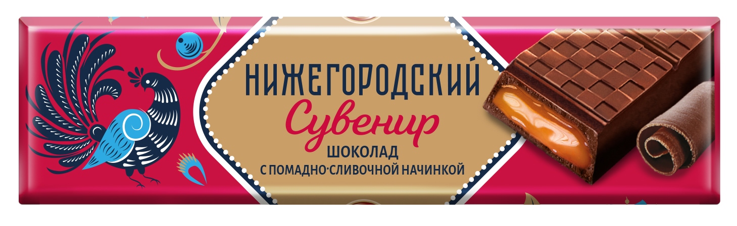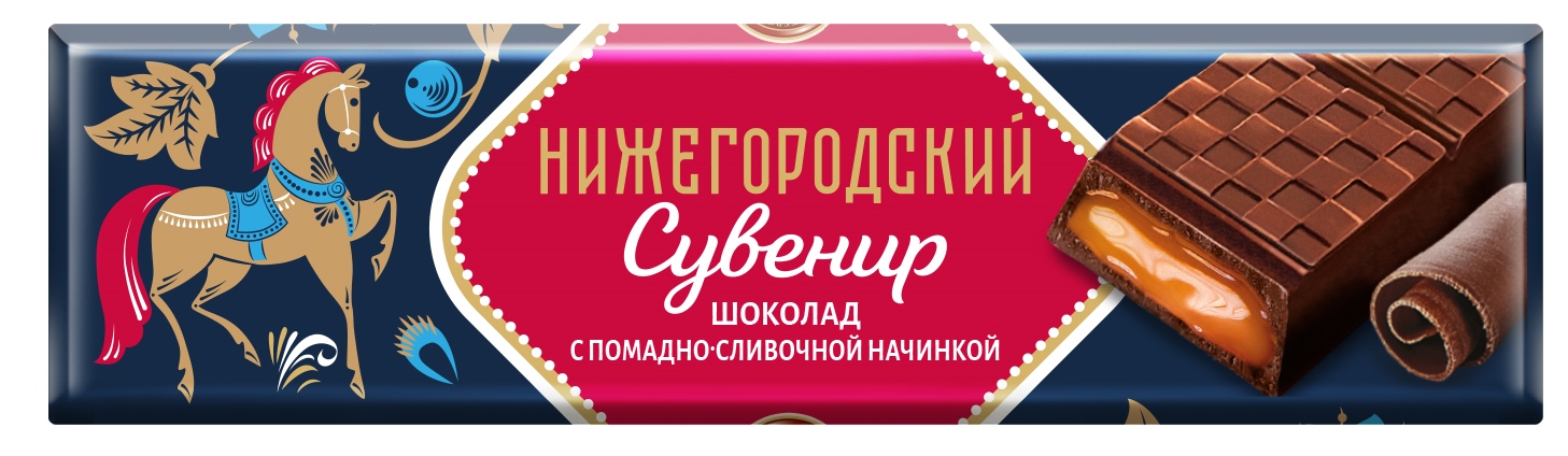 Темный шоколад из какао-продуктов собственной переработки, с ярким ароматом и насыщенным вкусом. Нежная начинка на базе сливочной помады с добавлением коньяка. Дизайн упаковки с элементами традиционных народных промыслов.