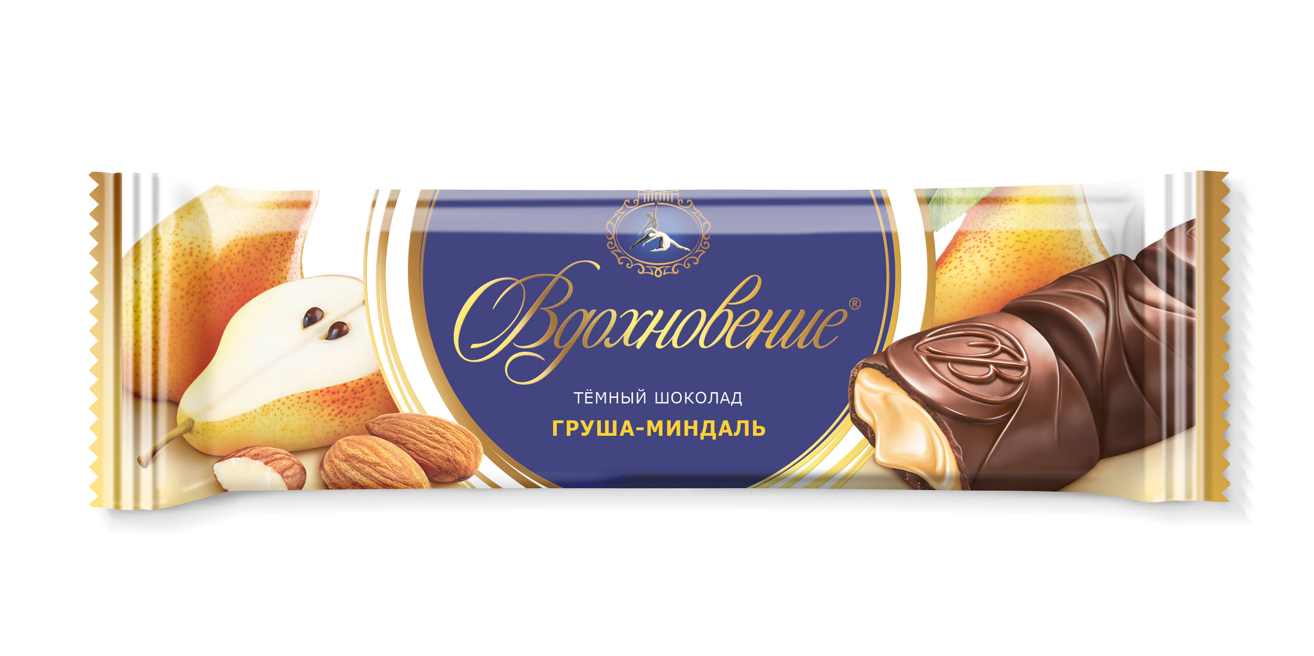 Изысканное сочетание темного шоколада и нежной кремовой начинки с добавлением тертого миндаля и сочной груши.