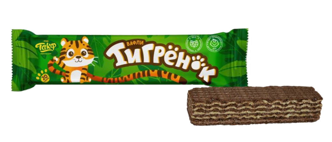 Вафли предназначены для питания детей старше 3-х лет. Хрустящий темный вафельный лист и нежная светло-желтая начинка со вкусом банана. Яркий дизайн, милый персонаж.