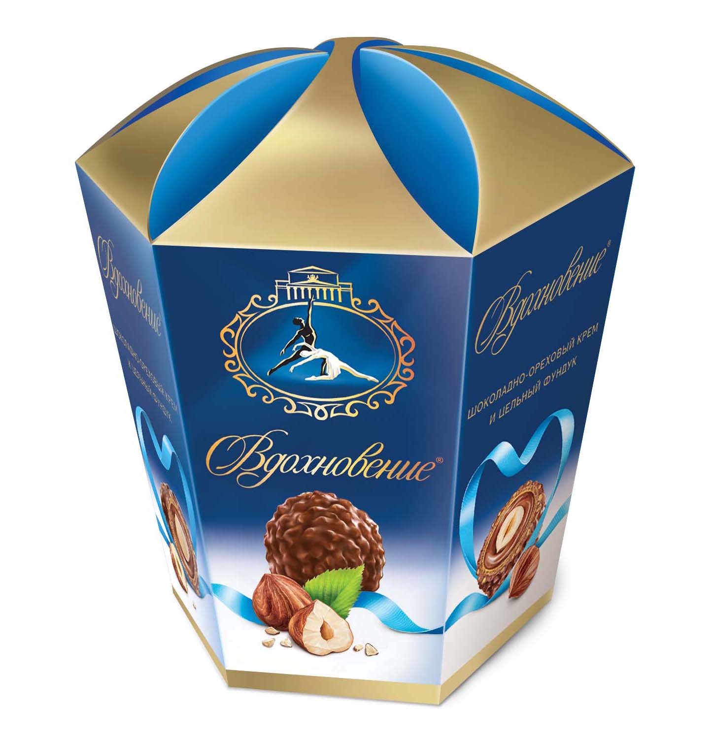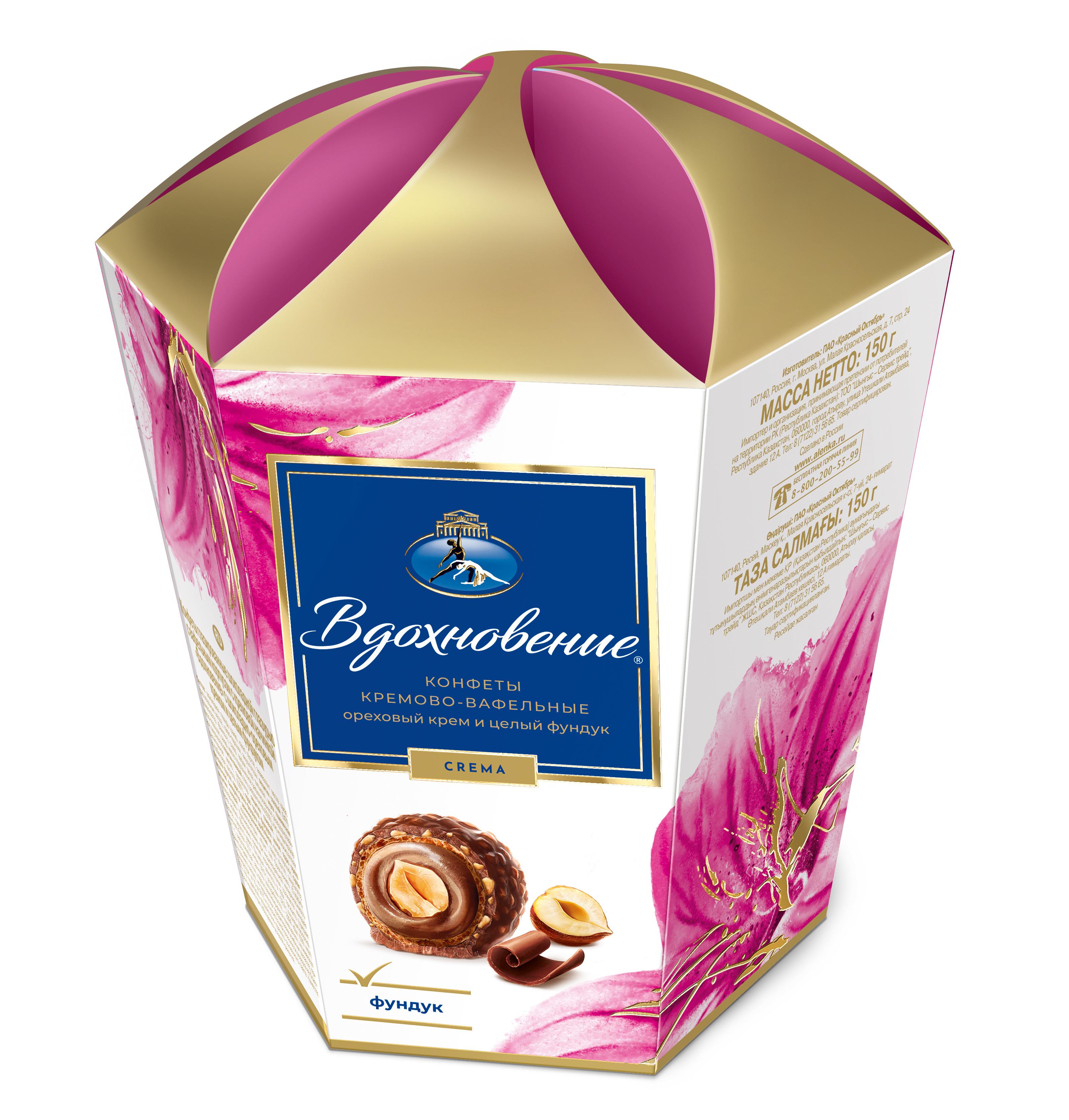 Целое ядрышко фундука, облаченное в нежный крем и покрытое тонкой хрустящей вафлей в шоколадной глазури с измельченными орешками.