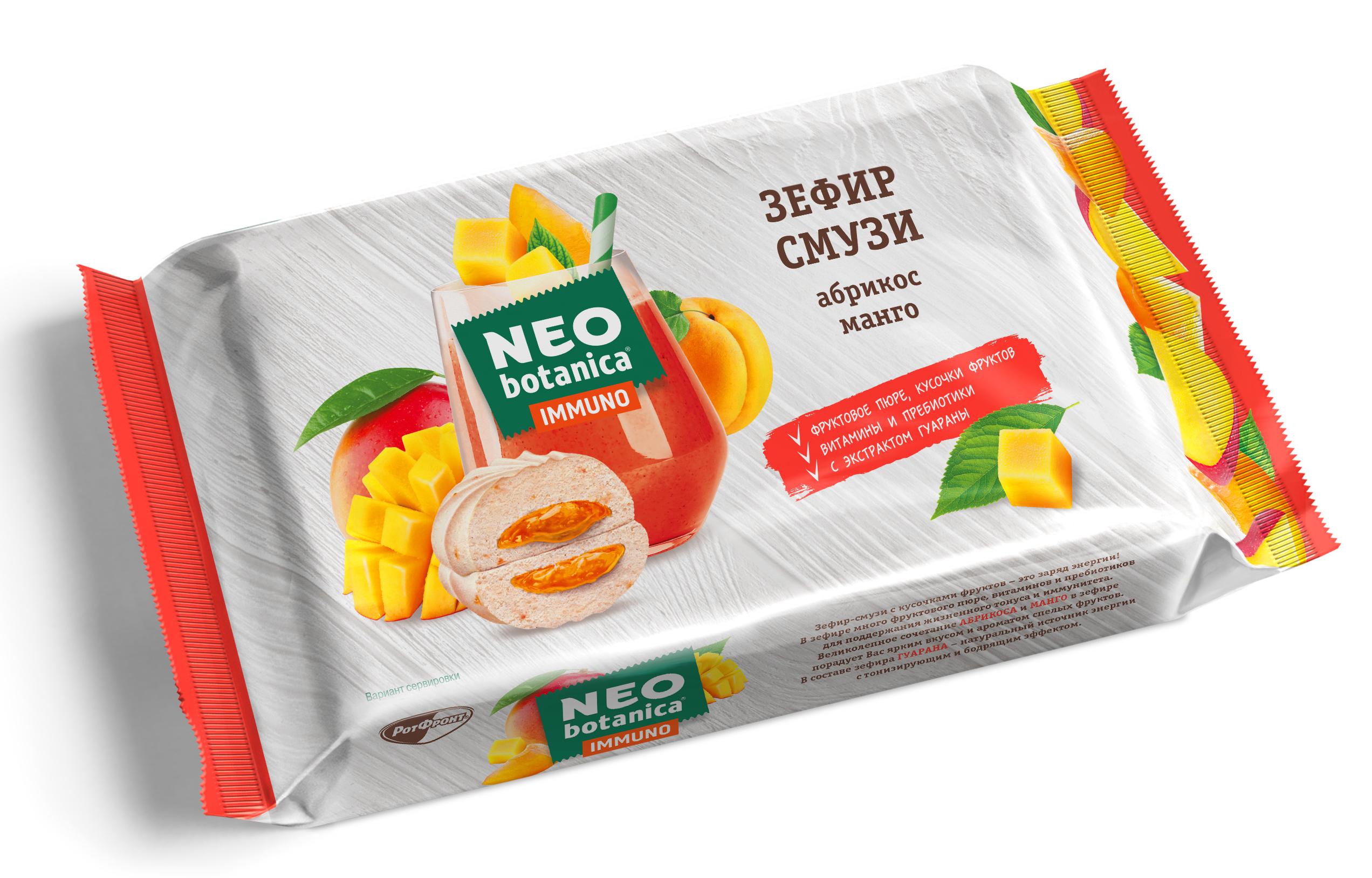 Зефир-смузи Neo-botanica для поддержания жизненного тонуса и иммунитета. В составе зефира фруктовое пюре, пребиотики и витамины.