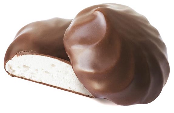 Нежный ванильный зефир, покрытый шоколадной глазурью в индивидуальной упаковке.