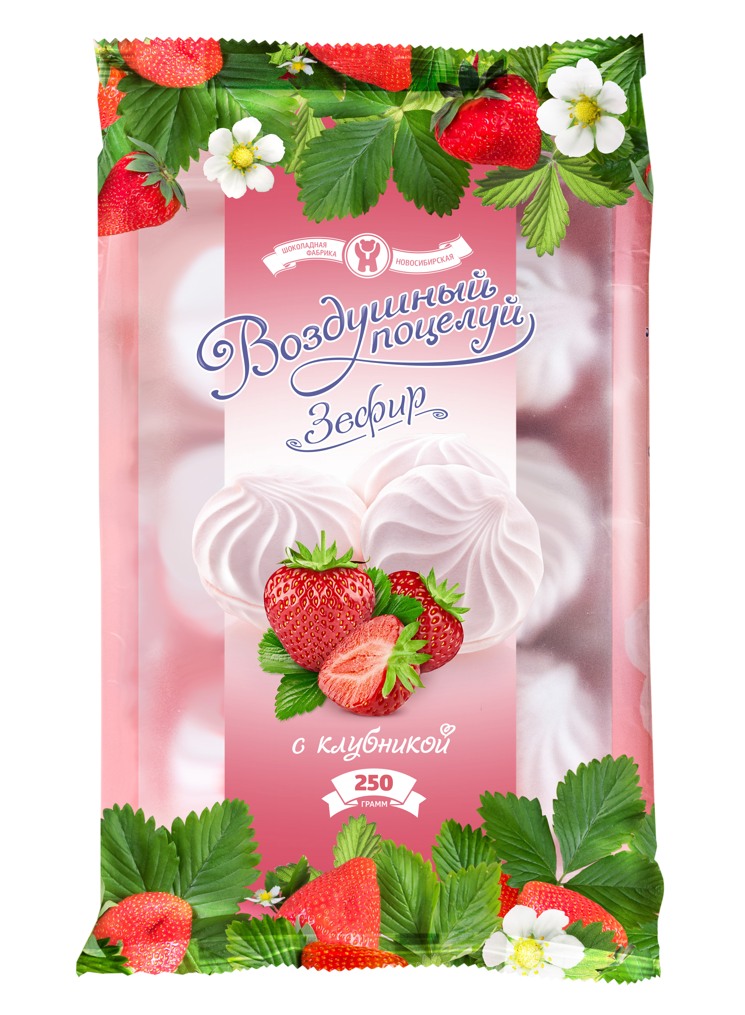 Нежный зефир с насыщенным ароматом и кусочками ягод клубники. Новинка в категории пастиломармеладных изделий, выпускаемая под маркой «Воздушный поцелуй».
