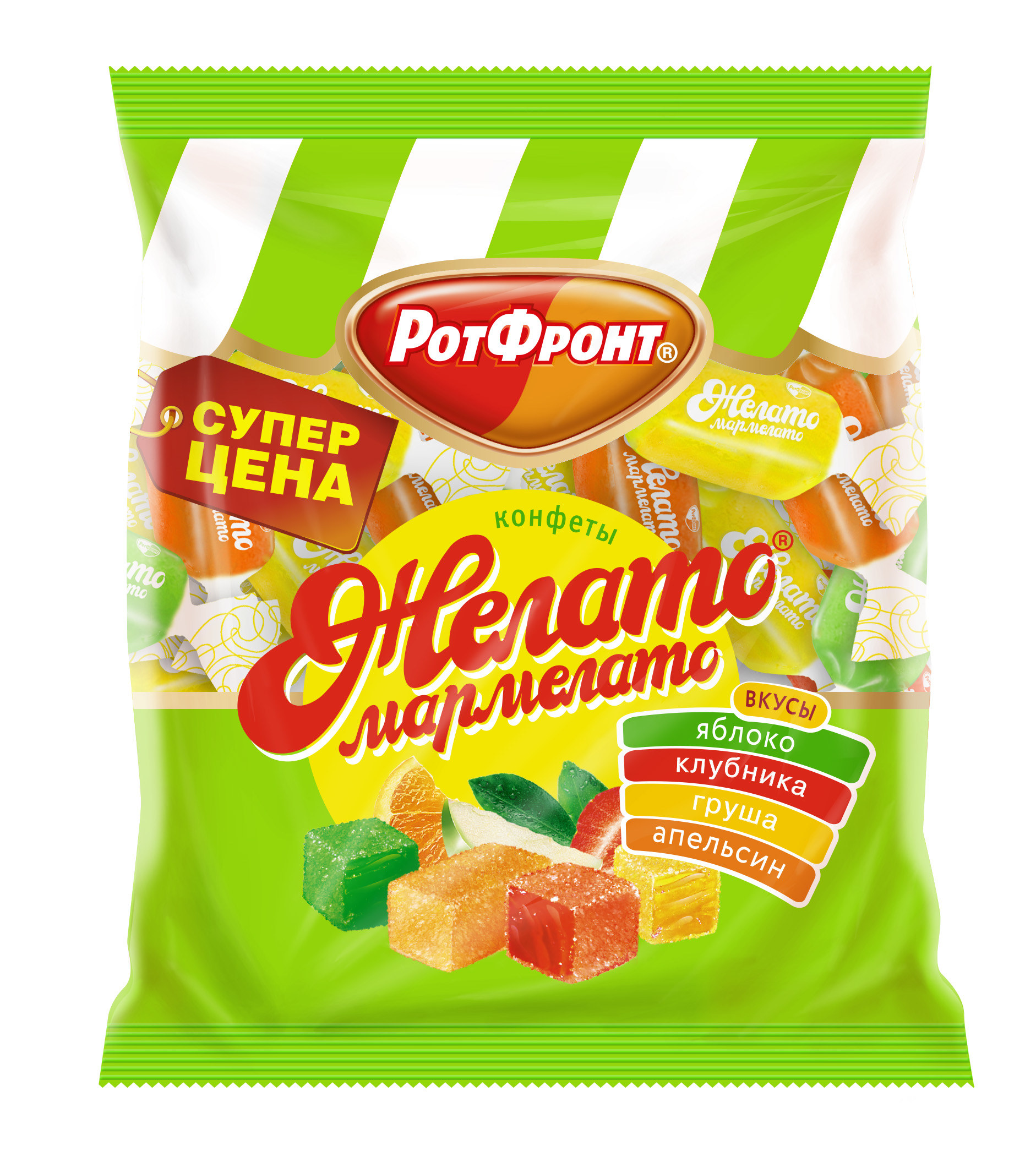 Неглазированные желейные конфеты умельченной формы в обсыпке мелким сахаром. Микс 4-х вкусов: яблоко, груша, земляника, апельсин
