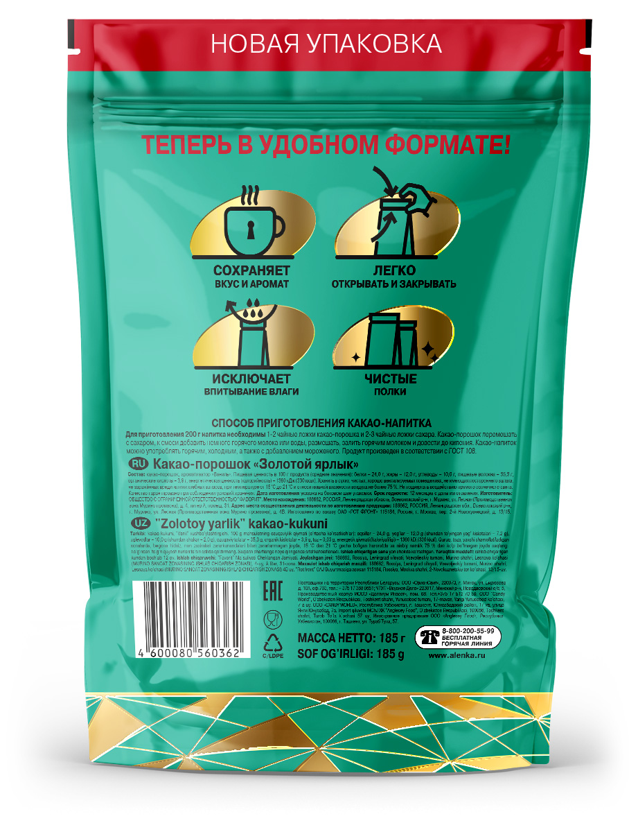 Какао-порошок «Золотой Ярлык» – самая знаменитая марка российского какао. Традиционное какао в новой упаковке.